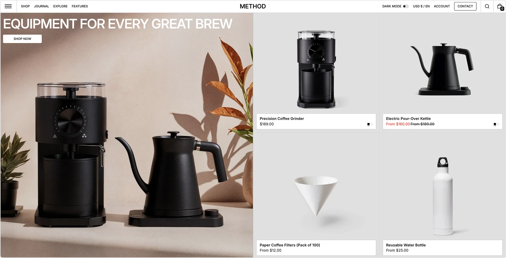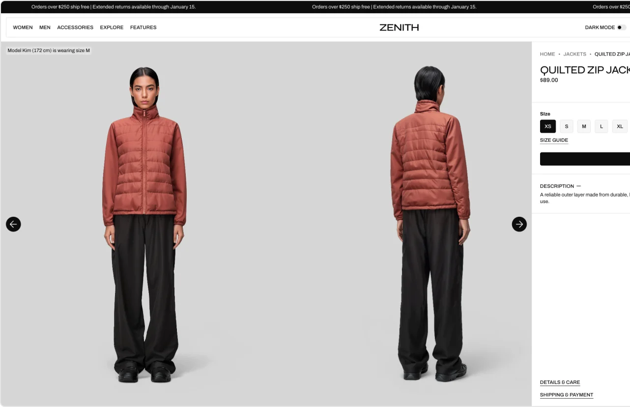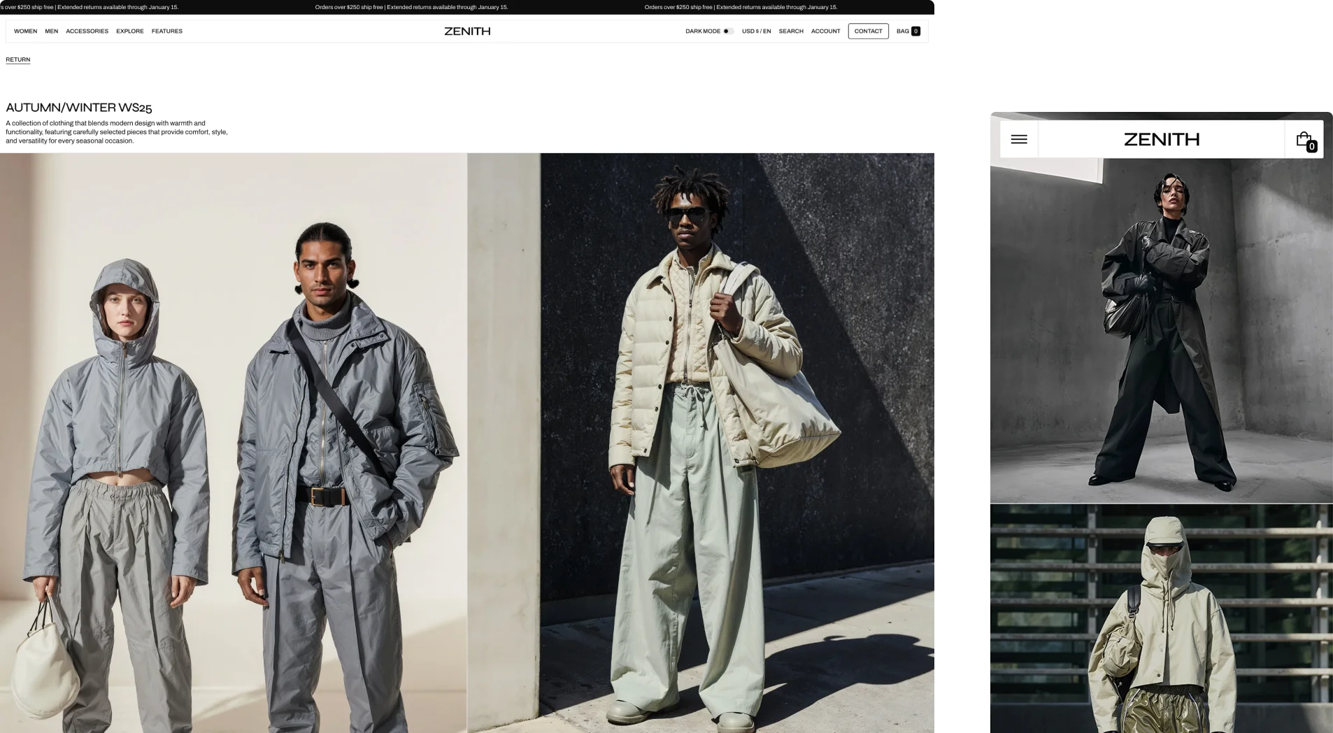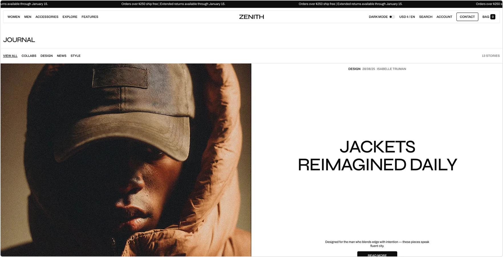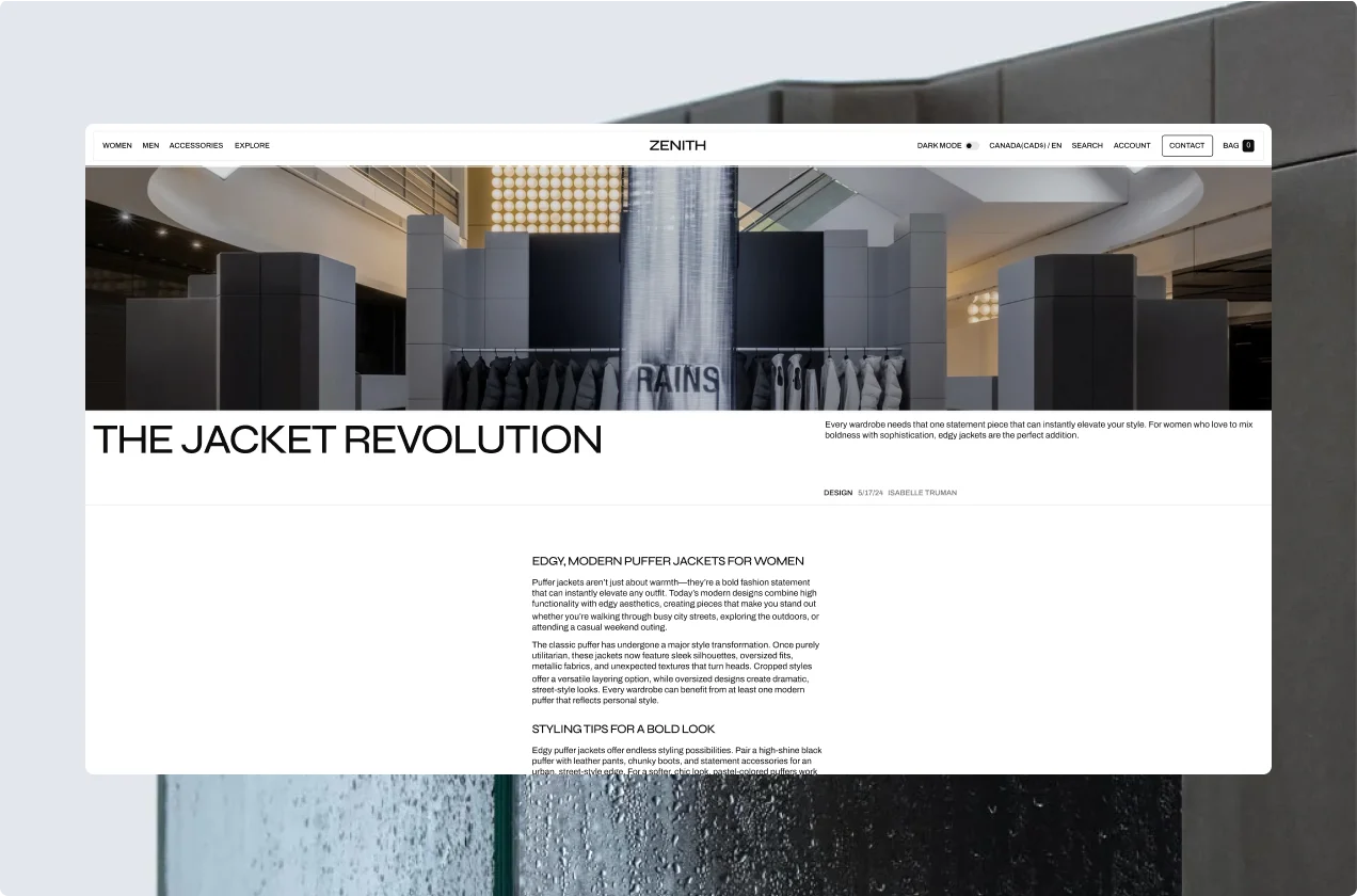 Designed for brands that value style and impact, Zenith showcases your products with refined design, captivating visuals, and immersive storytelling that creates a memorable shopping experience.